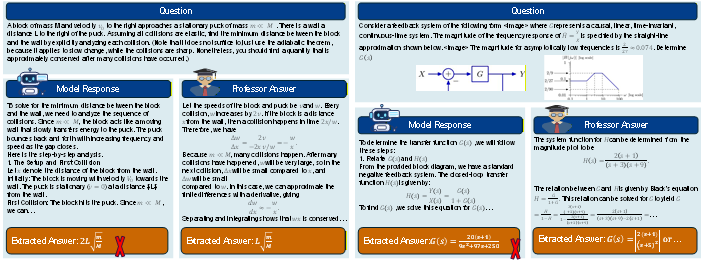 Evaluating STEM solutions is notoriously brittle due to algebraic variations and verbose reasoning. To reduce false positives from directly comparing long-form model responses with full reference solutions, we introduce variable based evaluation, denoted as Short-to-Short (S2S).